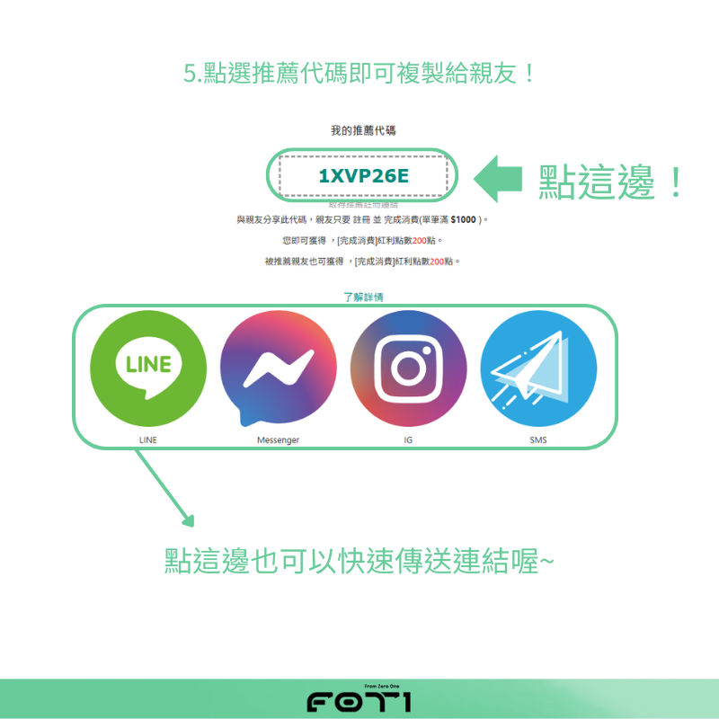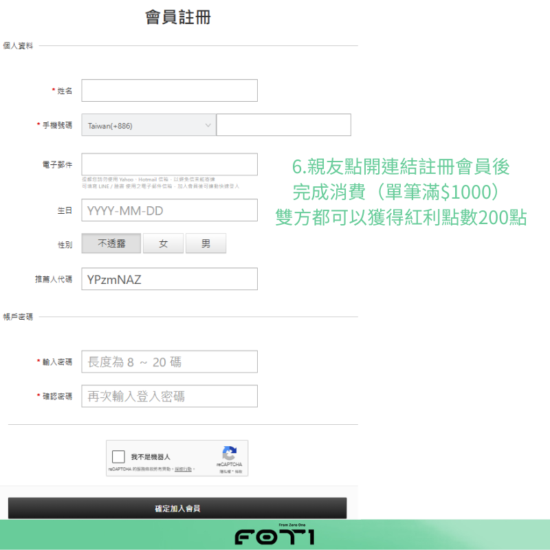 現在只要 邀請朋友加入 F0T1 並完成首筆消費(滿 $1000)