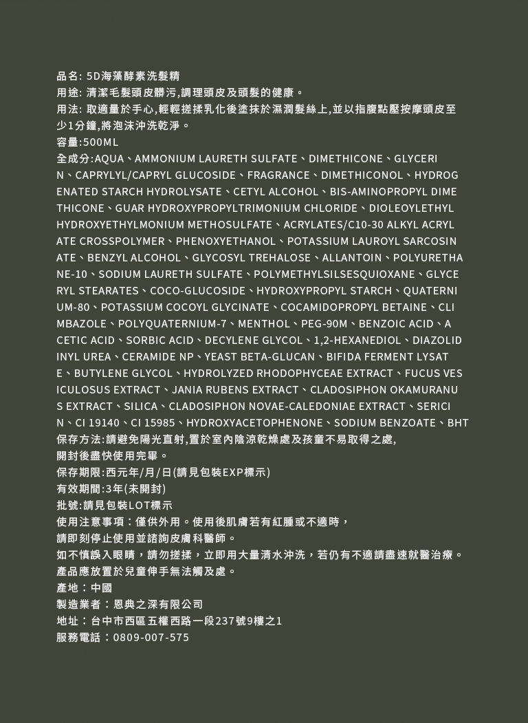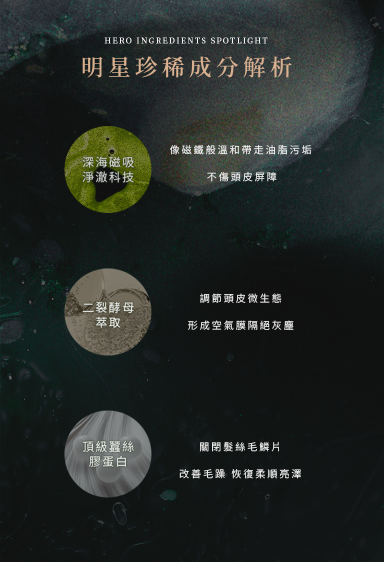 | 海藻萃取精華 | 富含海洋微量元素與保濕因子,能深層調理頭皮健康,強健髮根。 |