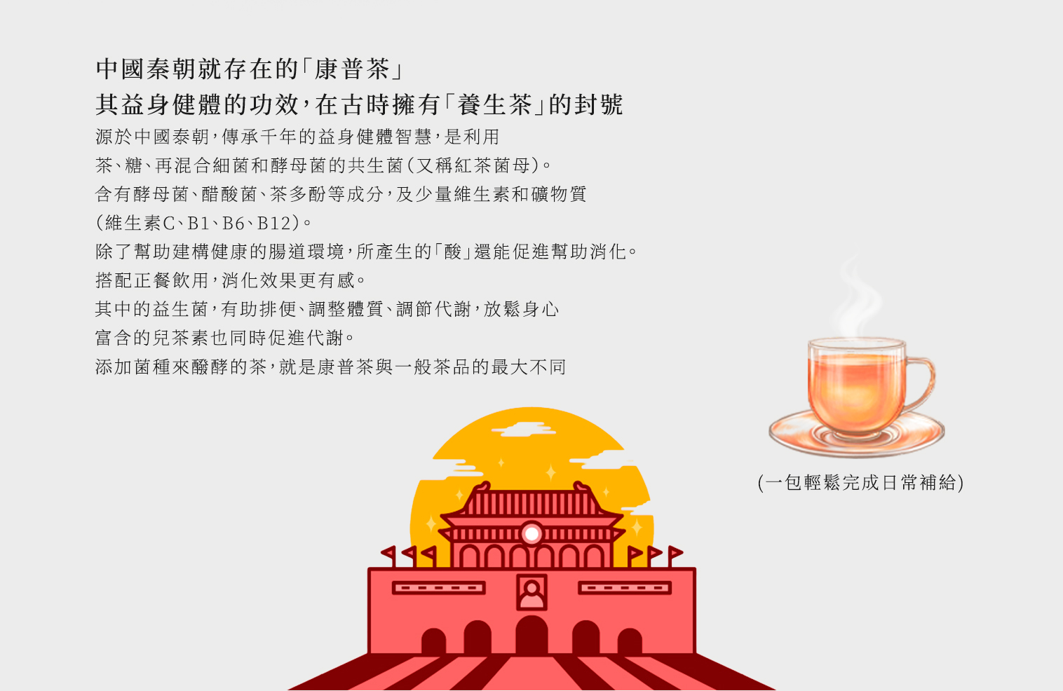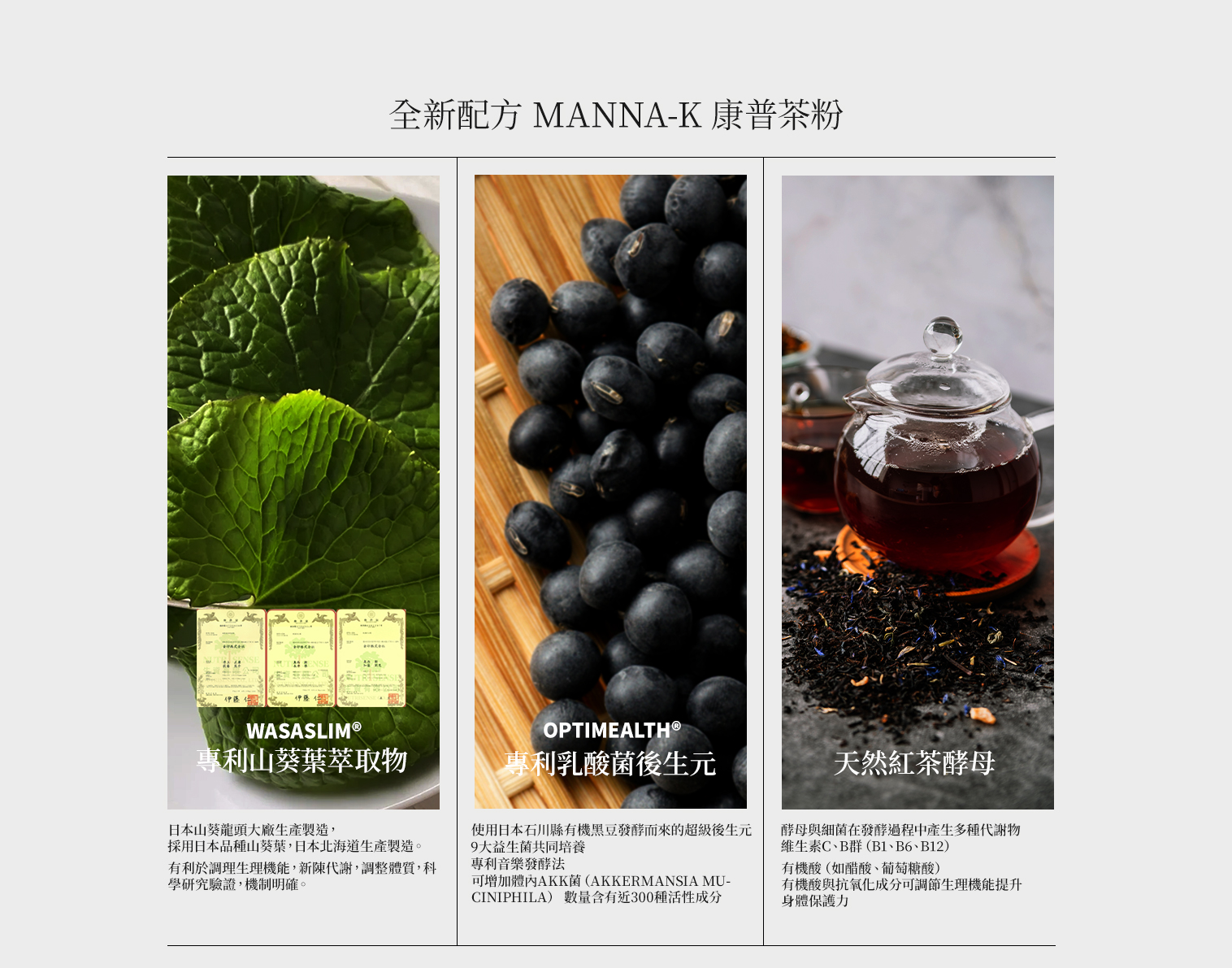 | 茶多酚/兒茶素來源 | 延續茶本味的清新感,日常搭配更順口,減少身體紅通通。 |