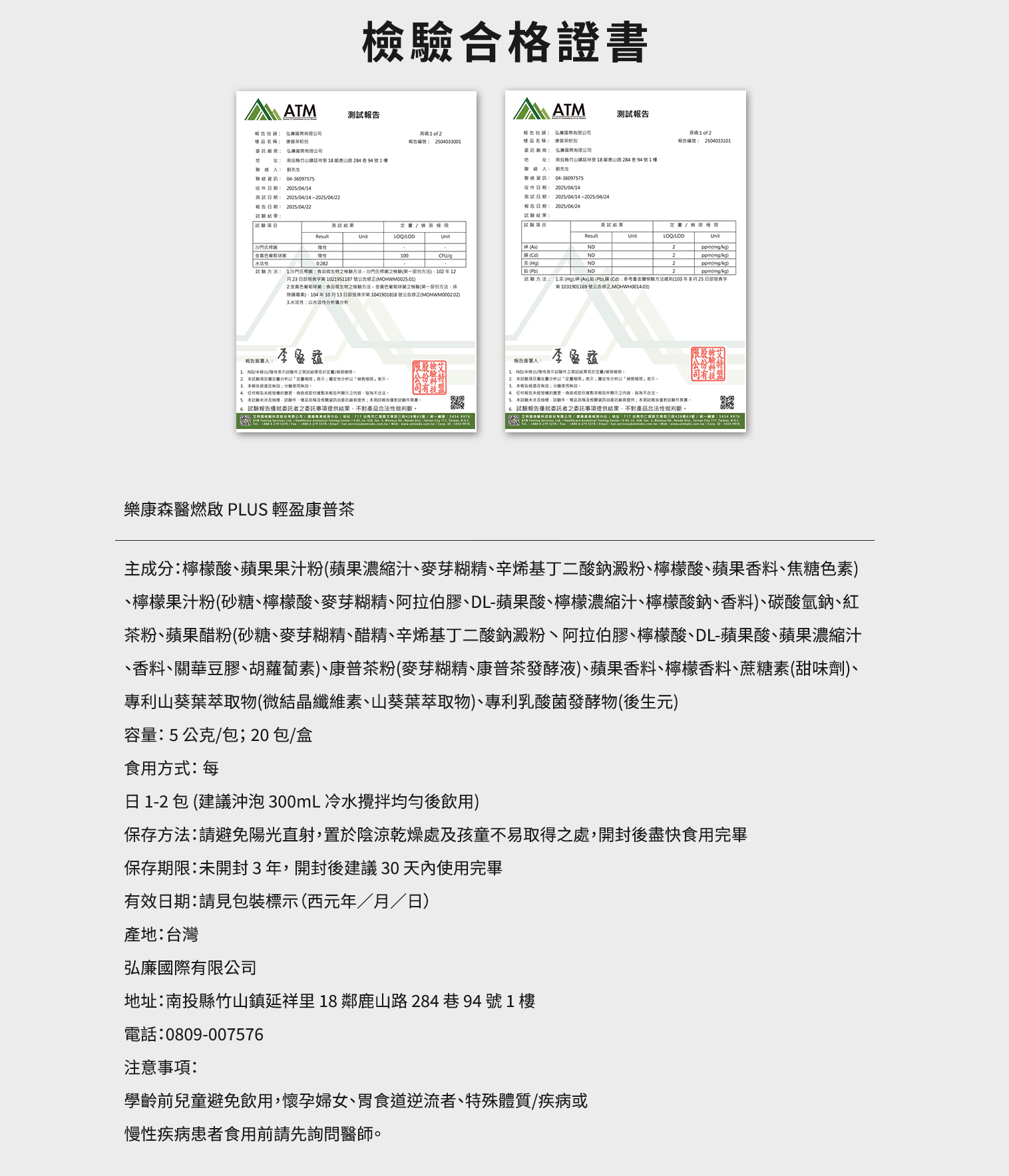 - 檢驗把關:重金屬、總生菌數、黃麴毒素等合格(以實際檢附報告為準)。