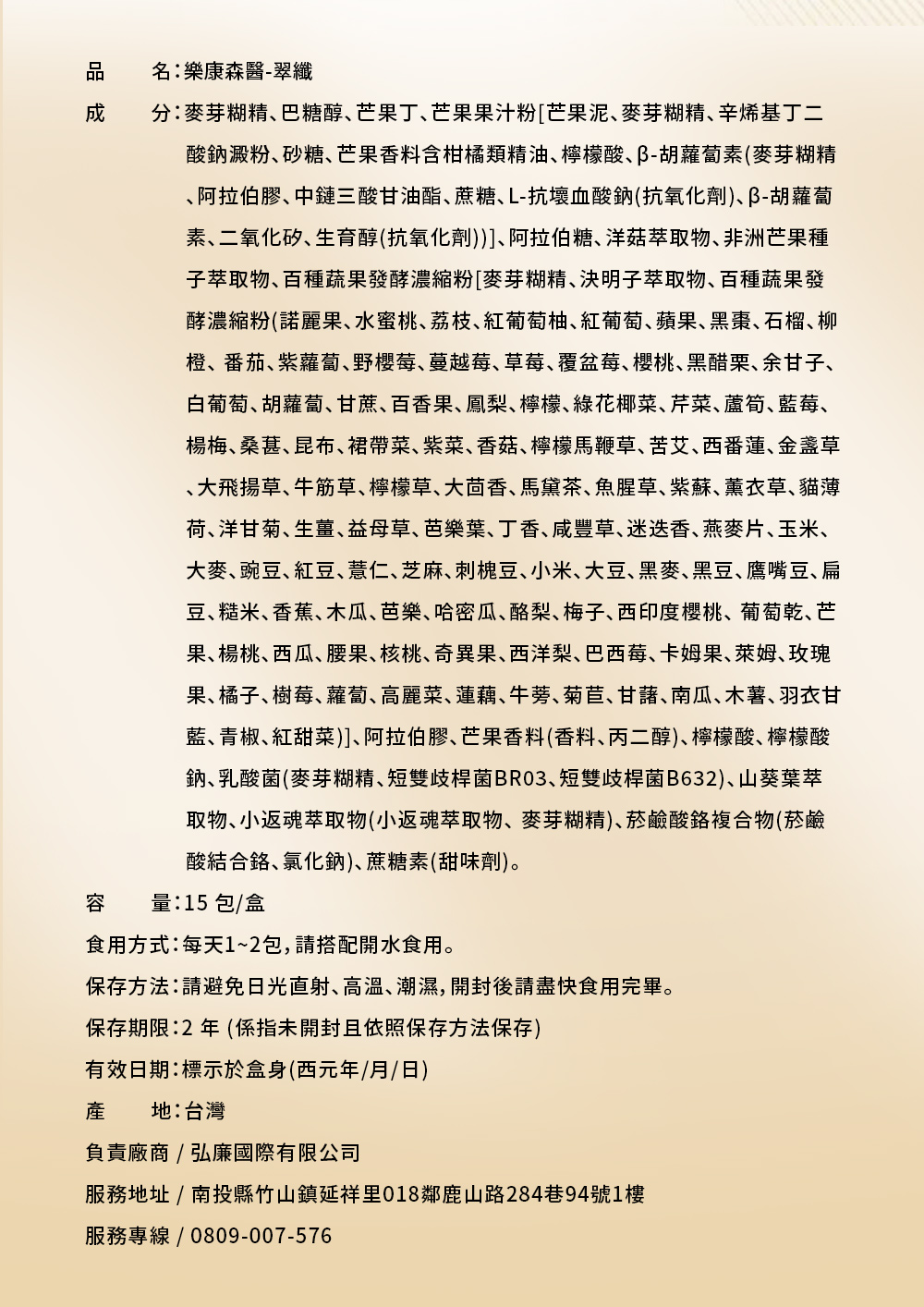- 建議每日 1–2 包,餐後搭配開水食用。