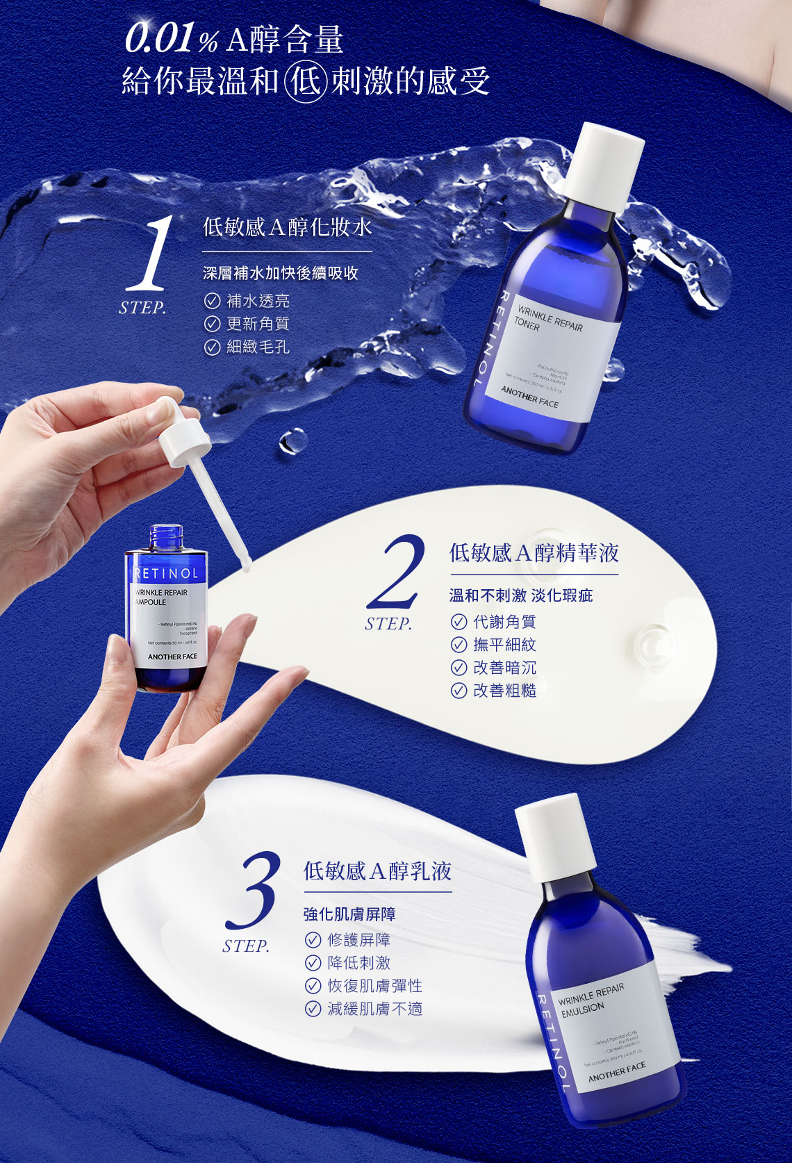 ﹥僅0.005%低濃度,A醇新手安心上手