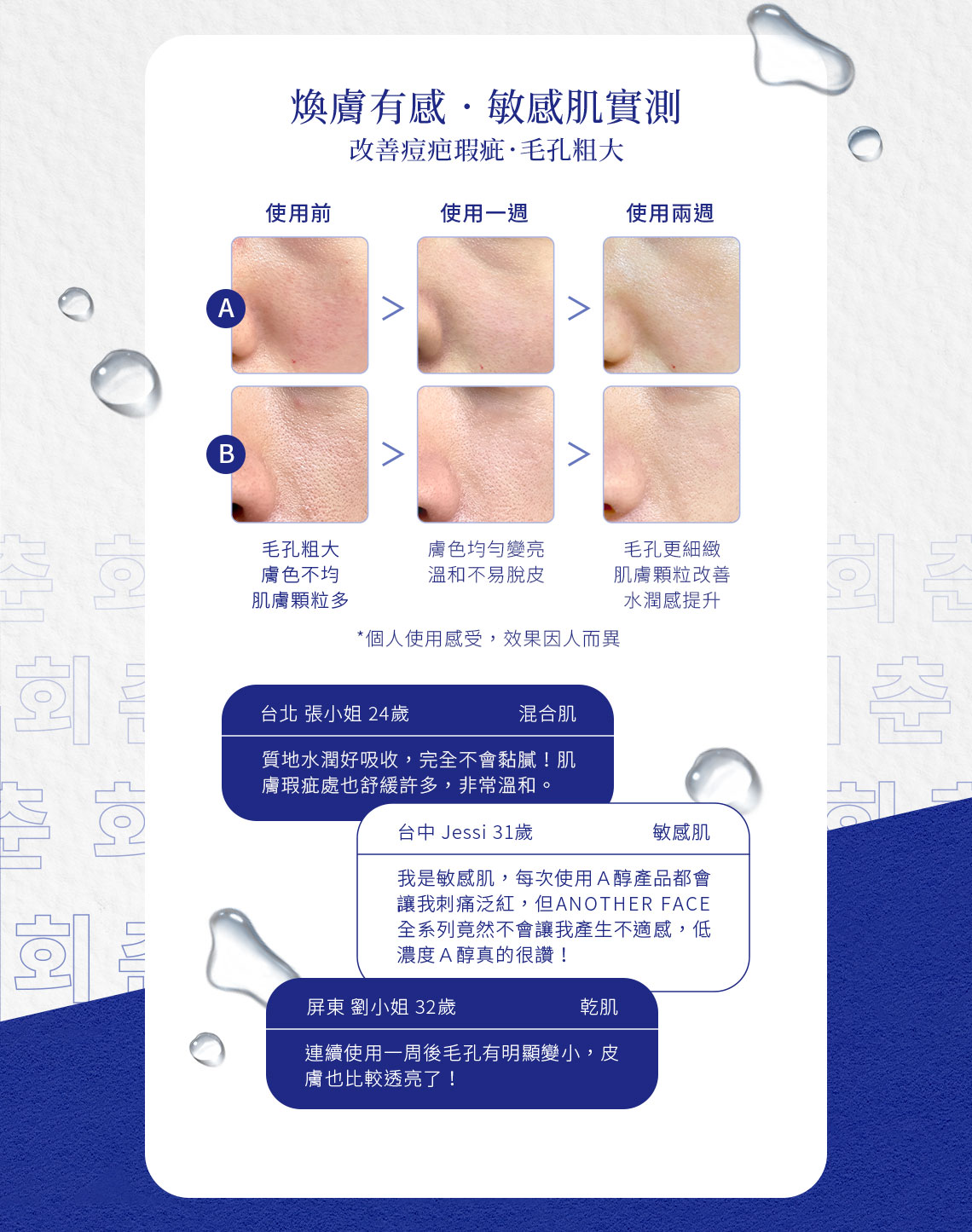 - 低濃度A醇,屬慢性調理,建議連續使用6個月以上已達到完整改善效果
