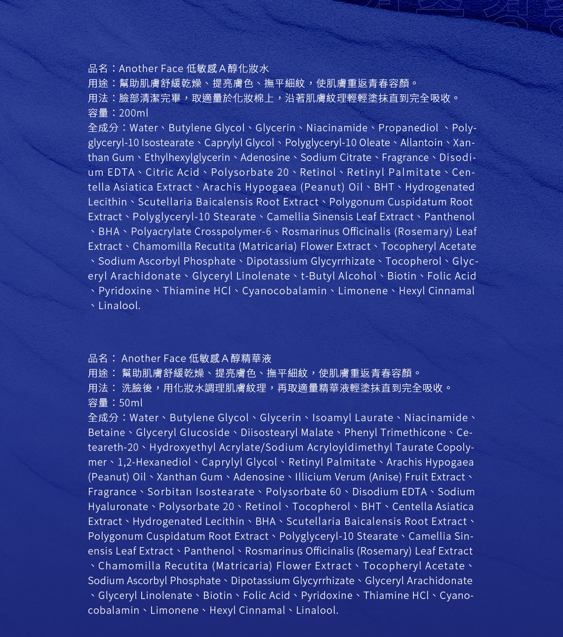 ANOTHER FACE 低敏感A醇化妝水
