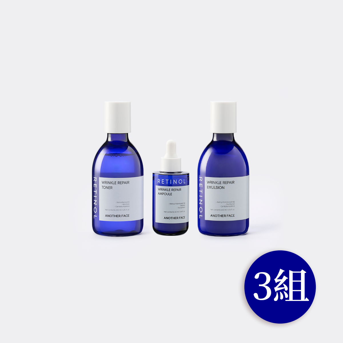 【像韓星一樣美】ANOTHER FACE 低敏感A醇套組(化妝水*3+精華液*3+乳液*3)