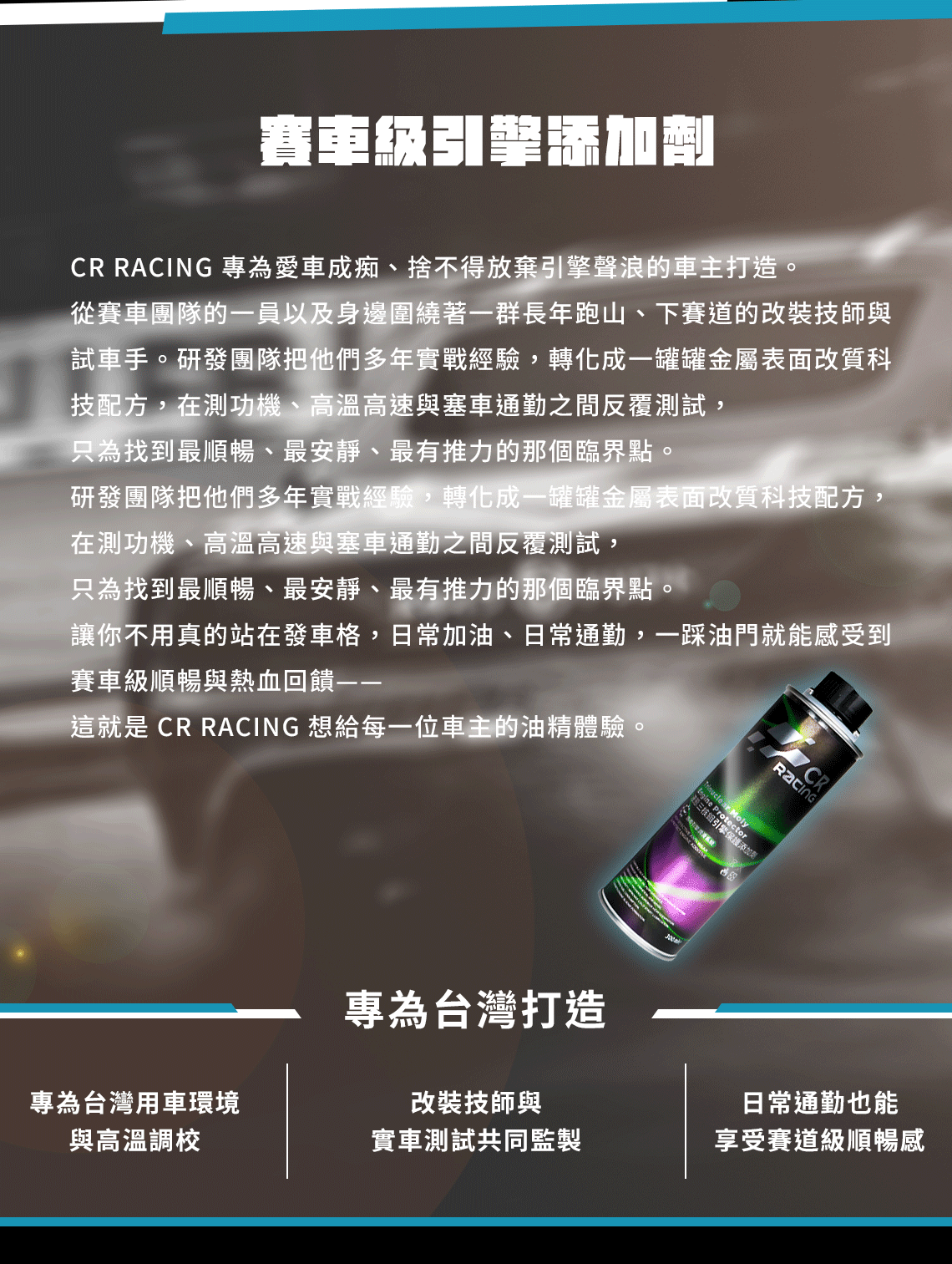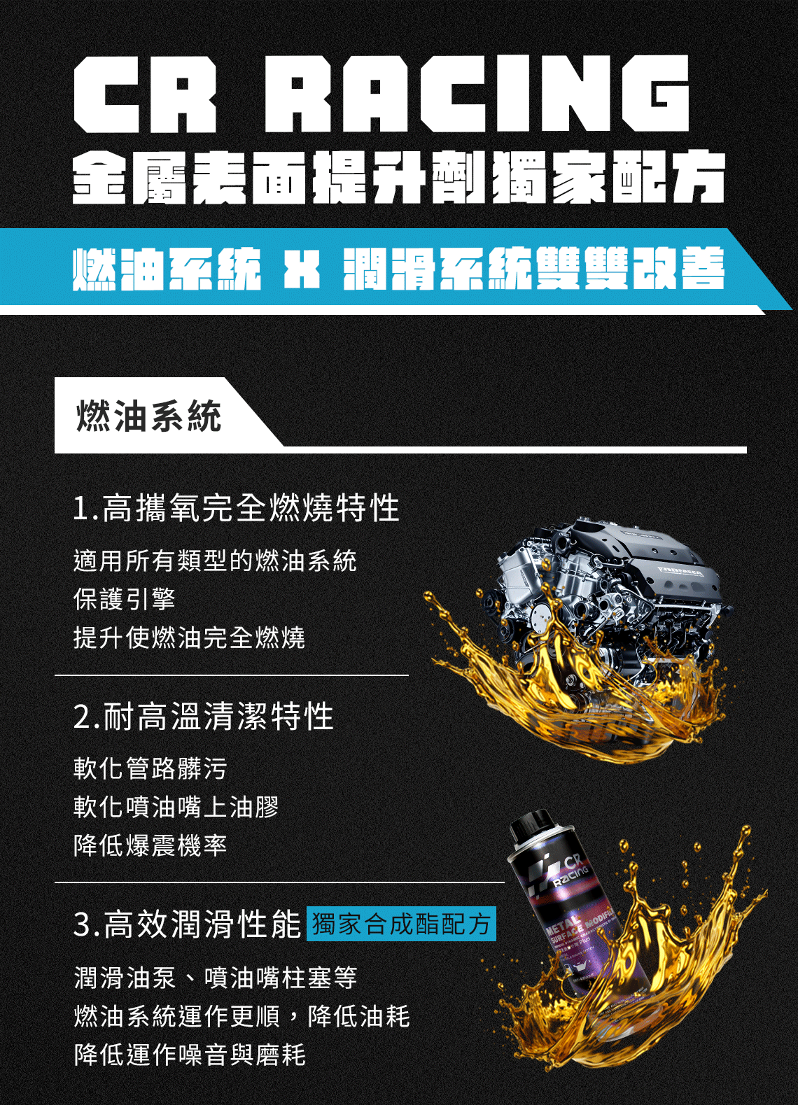 *CR RACING 金屬表面提升劑(300ml)*2+液態三核鉬引擎保護添加劑(300ml)*4