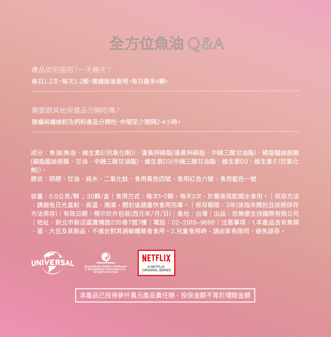 - 本產品含蛋與魚類成分,過敏者請留意。