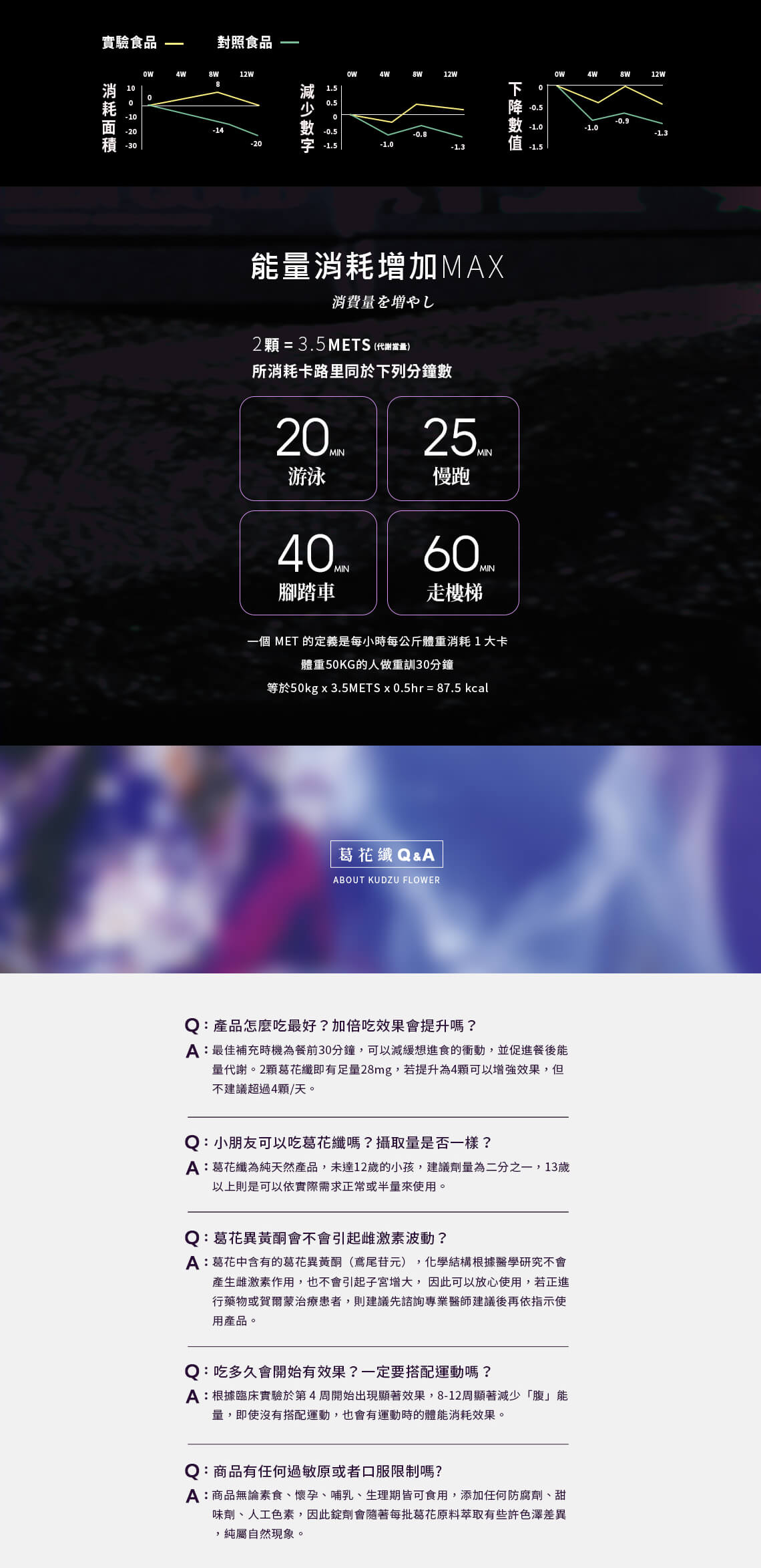 | 葛花膠囊 | 濃縮型配方,協同燃芯錠強化代謝循環與能量轉換。 |