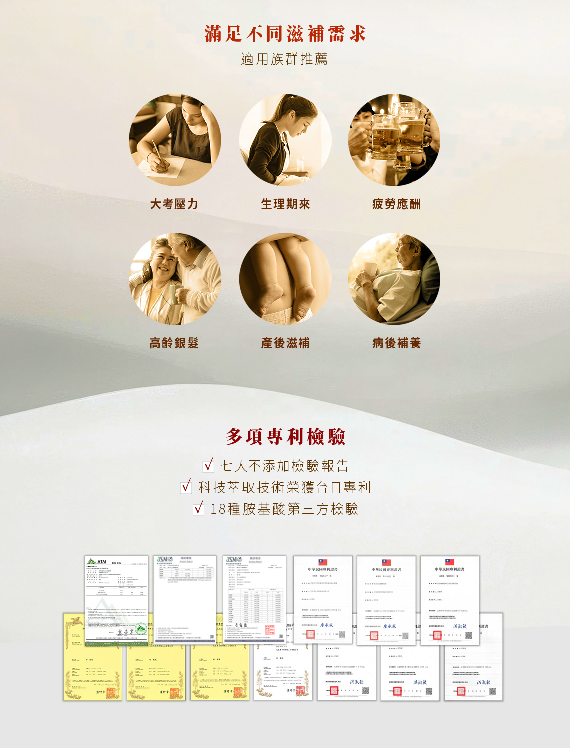 - 金絲燕窩+銀耳精華:10 倍濃縮萃取,富含活性胜肽與膠原成分。