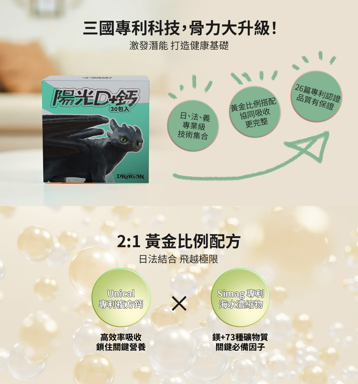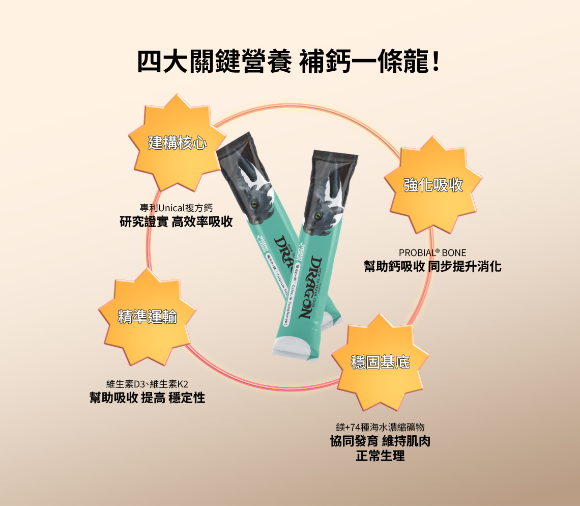 - 2:1 黃金比例:維生素 D3 + 檸檬酸鈣。