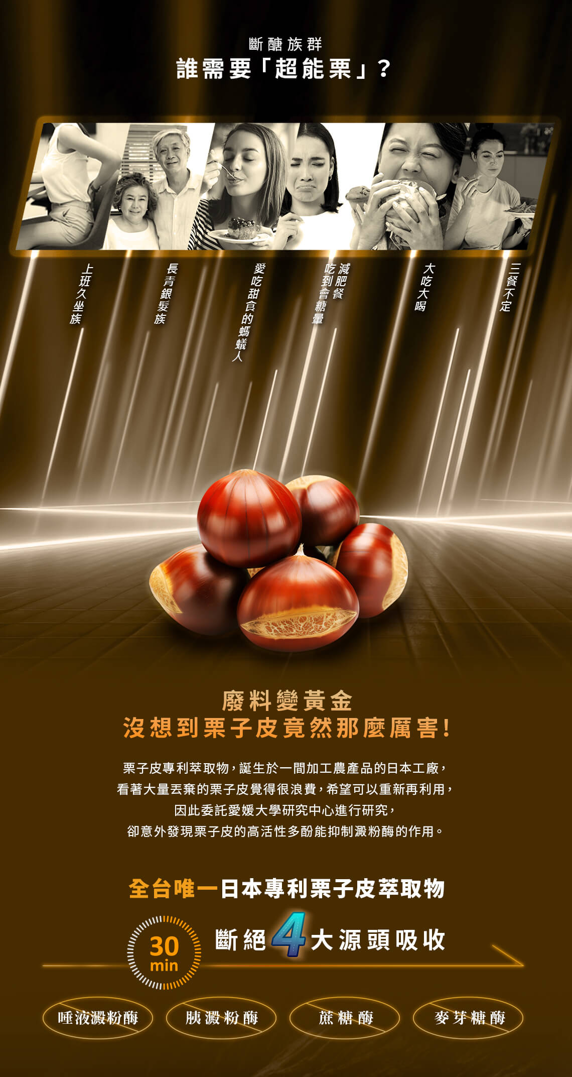 | 栗子皮萃取 | 超能栗 | 輔助體態管理、抗氧支持。 |