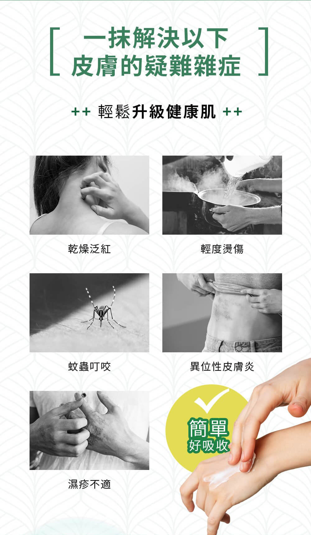 - 質地清爽不黏膩:局部加強保護,隨身攜帶、即刻舒緩。