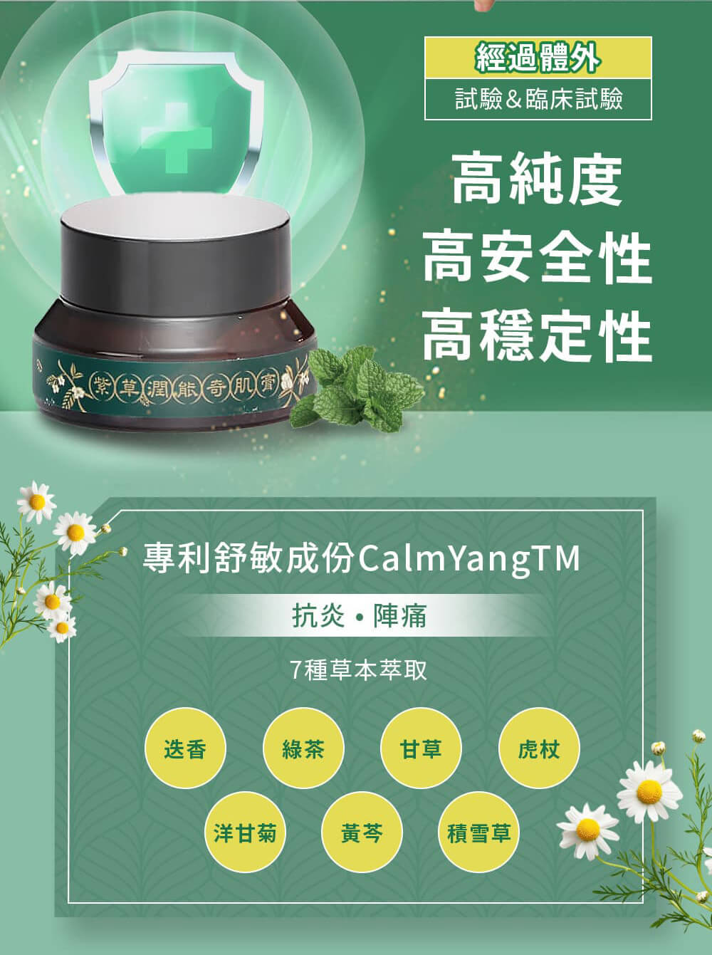 - 專利舒敏成分:天然草本協同,鎮靜肌膚、減緩不適。