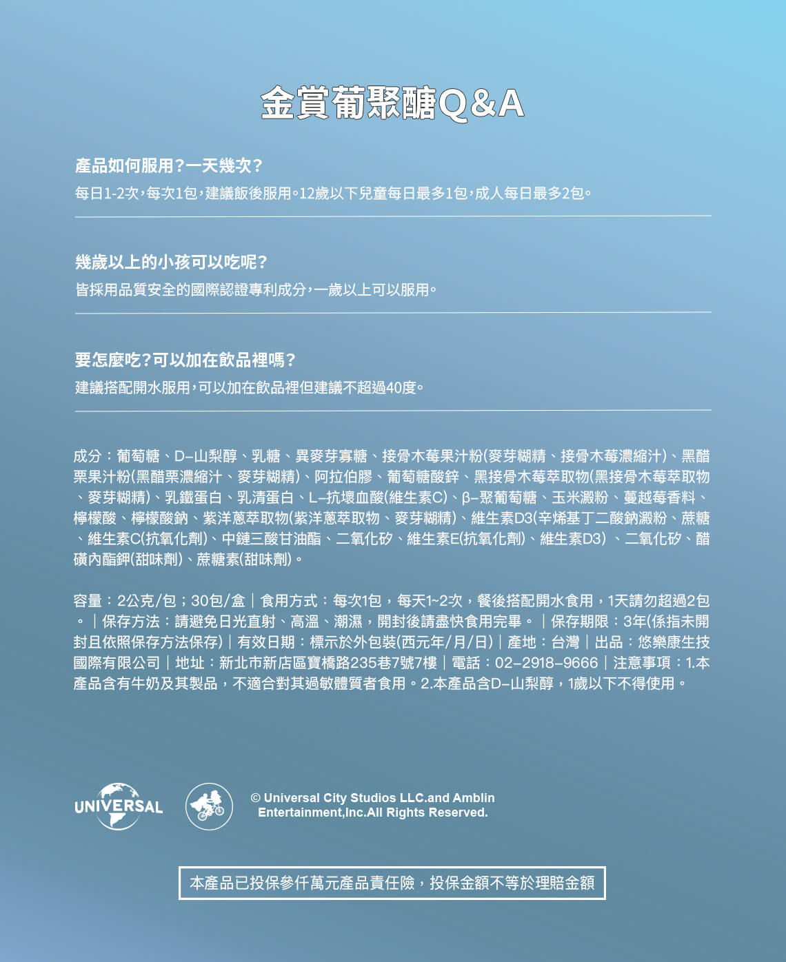 - ★ 金賞葡聚醣 含高純度 β-Glucan,有助於維持健康生理機能與日常防護。