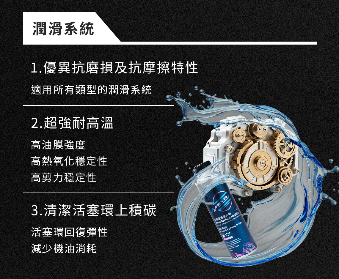 - 高效潤滑,降低油耗,防止積碳與磨損。